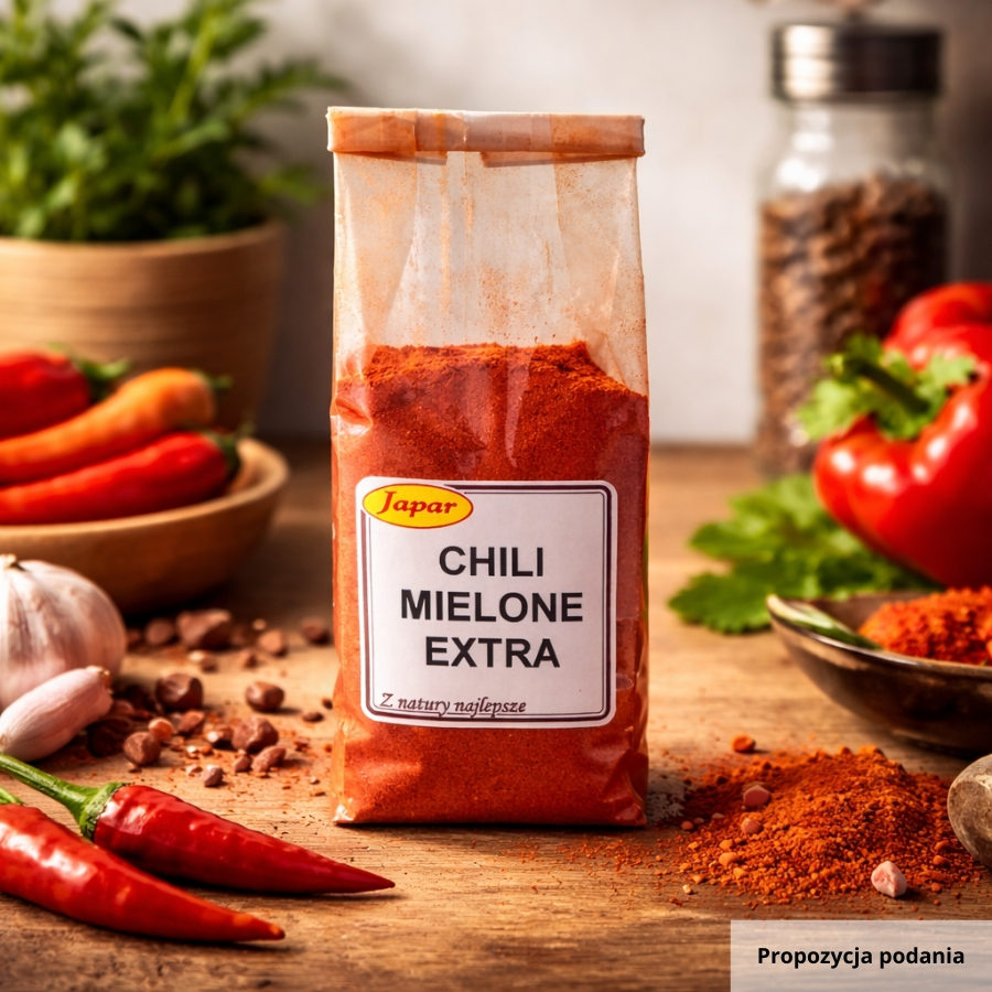 Chili mielone extra to przyprawa dla osób, które lubią wyraźną ostrość i charakter w kuchni. Powstaje z suszonych, mielonych papryczek chili o wysokiej mocy, dzięki czemu już niewielka ilość potrafi nadać potrawom zdecydowany, rozgrzewający akcent. Jego smak jest intensywny, czysty i długo utrzymujący się na podniebieniu. Idealnie pasuje do dań kuchni meksykańskiej, azjatyckiej i indyjskiej, ale świetnie odnajduje się też w klasycznych potrawach mięsnych i warzywnych.
