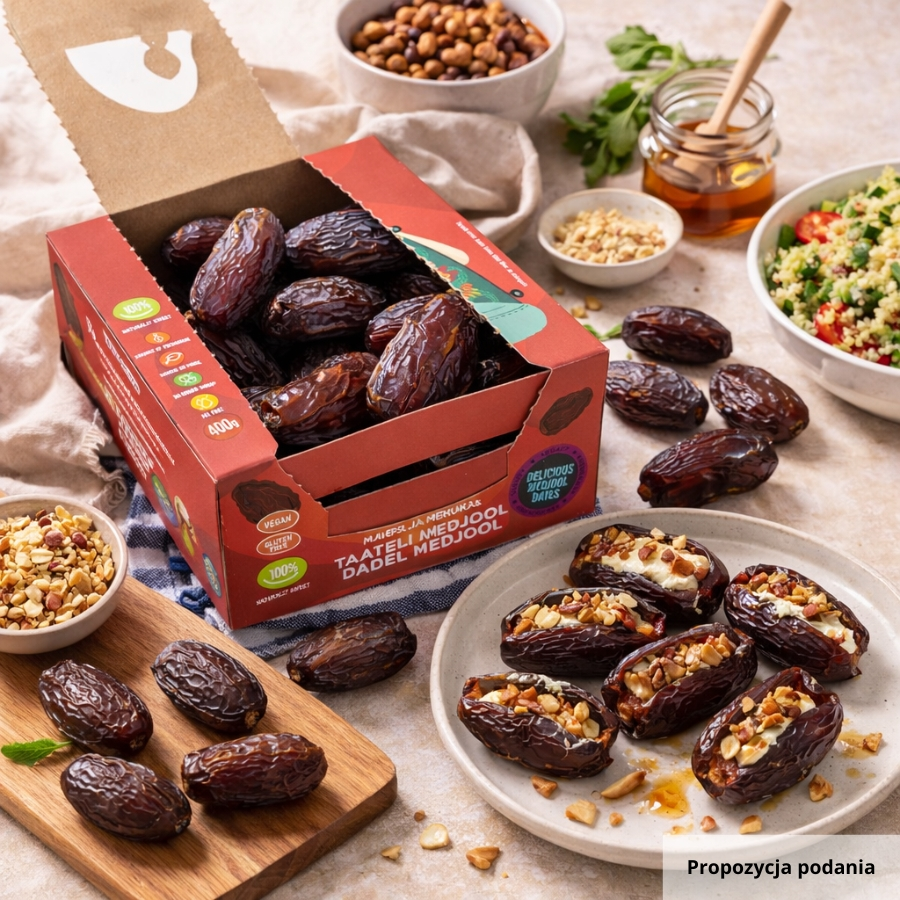 Daktyle Medjool wyróżniają się na tle innych owoców suszonych swoją wyjątkową wielkością, miękkością i głębokim, karmelowym smakiem. Są doskonałą alternatywą dla tradycyjnych słodyczy, a ich naturalna słodycz i bogactwo składników odżywczych sprawiają, że to prawdziwy skarb natury. Jeśli szukasz przekąski, która łączy smak, zdrowie i luksus – Medjool to najlepszy wybór!