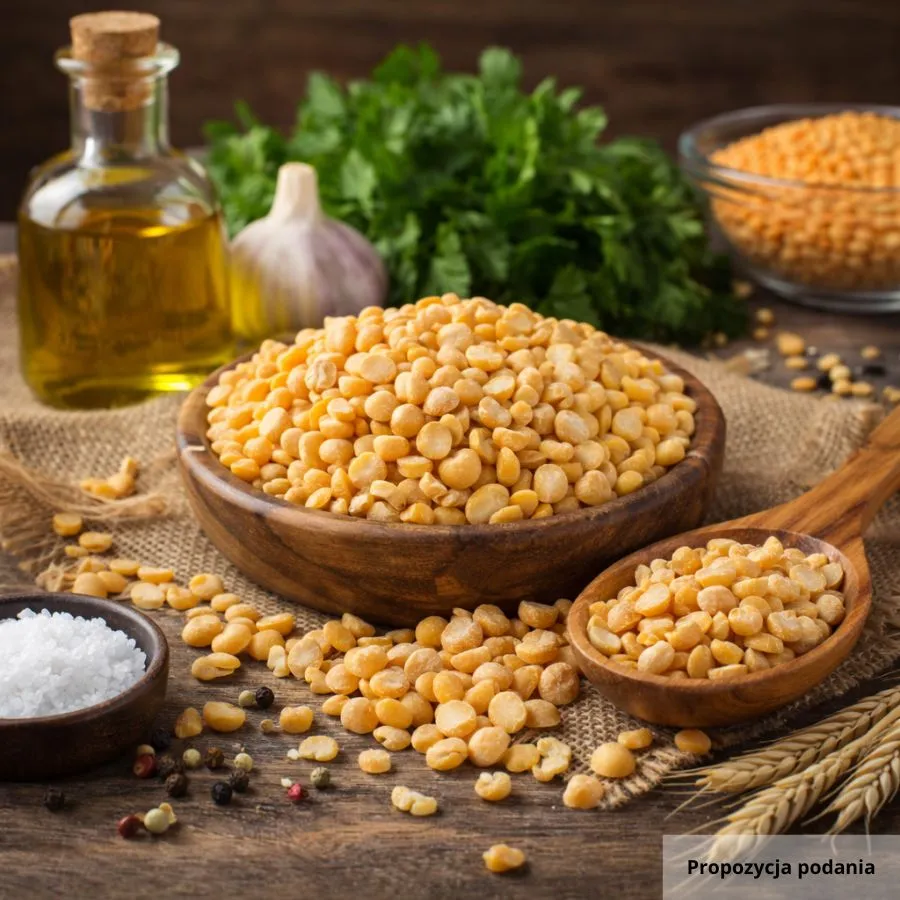 … groch łuskany w połówkach powstaje przez pęknięcie ziaren po usunięciu łupiny? Dzięki temu gotuje się szybciej niż cały groch i ma wyjątkowo kremową konsystencję, przez co od wieków jest podstawą wielu tradycyjnych zup i dań jednogarnkowych w kuchni europejskiej!