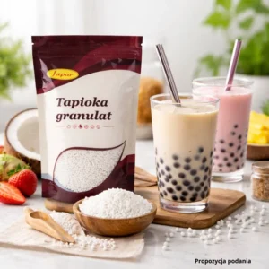 Mąka z tapioki to bezglutenowy produkt wytwarzany z manioku. Ma delikatny smak i świetnie zagęszcza zupy, sosy i desery. Popularna w kuchni azjatyckiej i diecie bezglutenowej. Nadaje potrawom sprężystości.