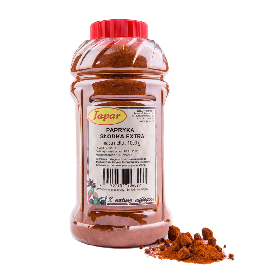 Papryka słodka mielona to przyprawa niezastąpiona w kuchni środziemnomorskiej, węgierskiej i polskiej. Nadaje daniom piękny kolor i subtelnie podkreśla ich smak.