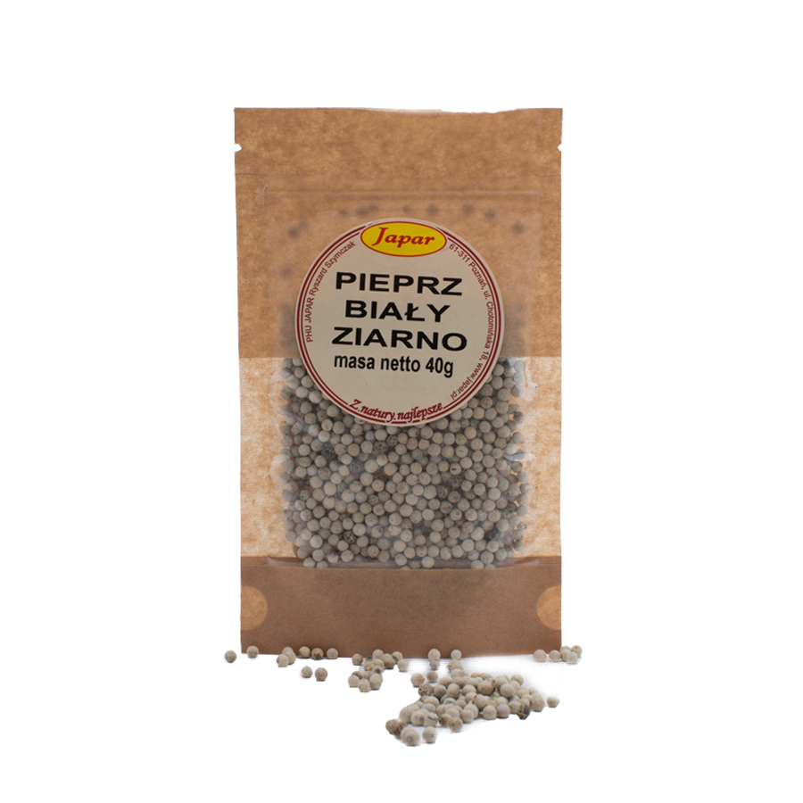 Pieprz biały w ziarnach to elegancka odmiana dobrze znanej przyprawy, ceniona za swój delikatniejszy, a jednocześnie bogaty smak. Powstaje z dojrzałych owoców pieprzu czarnego, które po namoczeniu zostają pozbawione skórki, odsłaniając kremowobiały rdzeń. To przyprawa uwielbiana przez szefów kuchni na całym świecie – dodaje wyrafinowanego charakteru daniom, nie dominując ich smaku.
