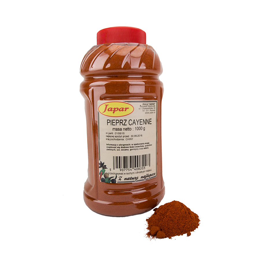 Pieprz cayenne, znany również jako papryka kajeńska, to jedna z najbardziej ognistych przypraw świata. Już niewielka ilość dodaje potrawom intensywnej pikanterii i głębokiego smaku. Ten drobno zmielony proszek o intensywnie czerwonej barwie powstaje z suszonych strąków papryki cayenne, należącej do rodziny chili. Idealny dla miłośników ostrych doznań!