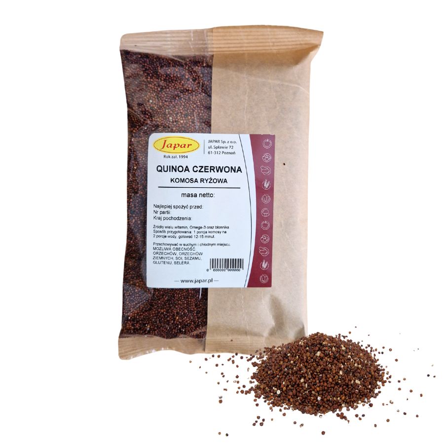 Komosa ryżowa czerwona to pożywna i kolorowa odmiana quinoa o lekko orzechowym smaku i jędrnej strukturze. Świetna do sałatek, dań warzywnych i mięsnych.