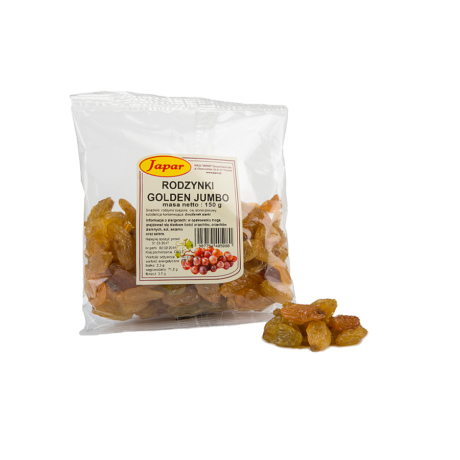 Rodzynki Golden Jumbo wyróżniają się jasnym, złocistym kolorem, który uzyskuje się poprzez suszenie na słońcu oraz specjalny proces obróbki. W starożytności rodzynki były tak cenione, że Rzymianie używali ich jako waluty i nagrody dla zwycięzców zawodów sportowych. W niektórych kulturach wierzono również, że przynoszą szczęście i dobrobyt, dlatego chętnie dodawano je do świątecznych wypieków.