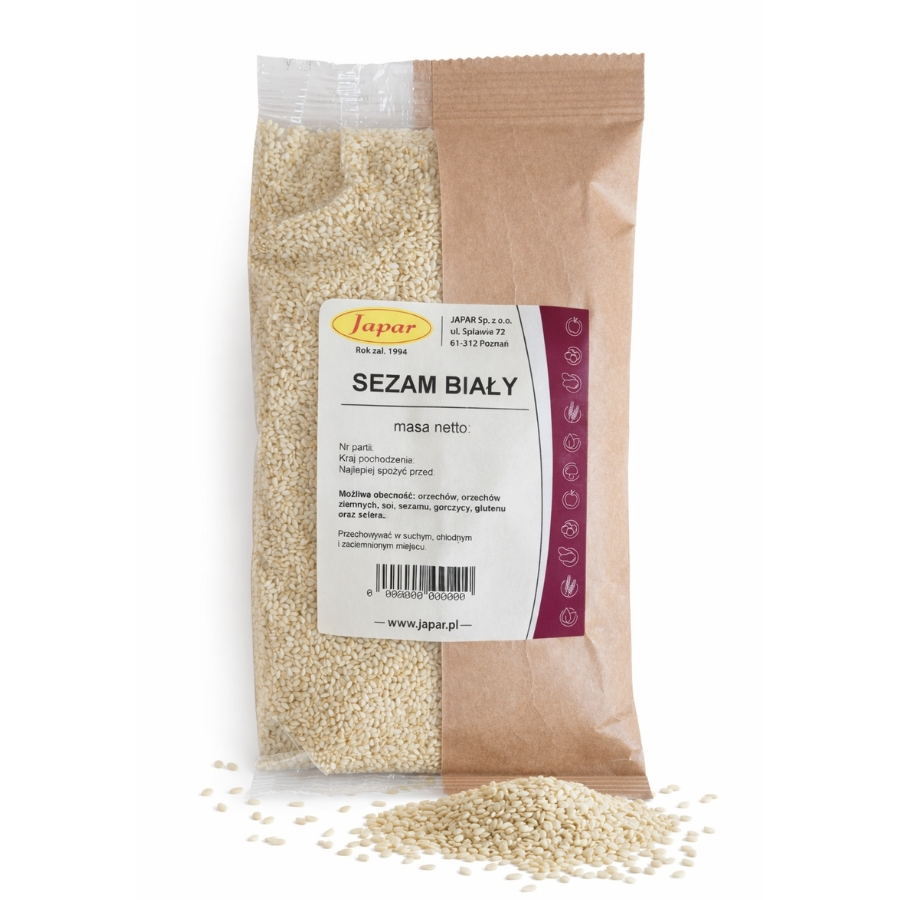 Sezam biały to drobne nasiona o delikatnym smaku, idealne do pieczenia, sałatek i dań orientalnych. Bogaty w błonnik, wapń i zdrowe tłuszcze, doskonale uzupełnia codzienną dietę.